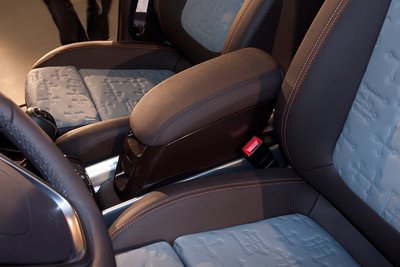 A két első ülés között ilyen sínes, dobozos, kiveszem-berakom tárolórendszer van, ami szintén nagyon fontos egy egyterűnél