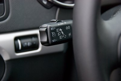 Tipikus Škoda-tükörállítás. A bal tükörrel együtt mozog a jobb is, hogy vezetőváltáskor csak egy műveletet kelljen végezni. Ha a jobb rosszul áll, az külön megy