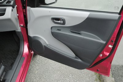 A hátsó ajtókárpit egyetlen műanyag fröccsöntvény. Nyilván így igazán olcsó.