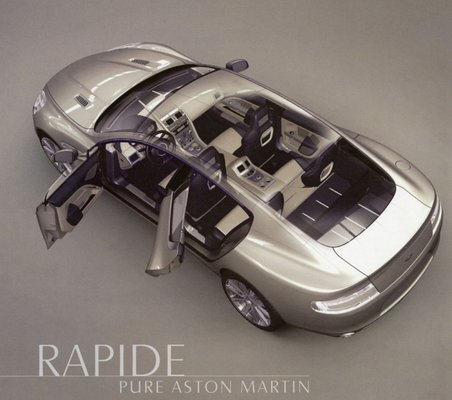 A 2006-os Detroiti Autószalonon láthattuk először azt a koncepcióautót, ami alapján a Rapide készült. Jó hír, hogy a sorozatgyártásba kerülő modell alig különbözik az ott kiállított példánytól: eltűntek az apró oldalsó légbeömlők az első lökhárítóról, helyette szép, domború díszcsík fut végig az autó oldalán. Annyira szépen belesimították a hátsó ajtókat a karosszériába, hogy szinte észre sem venni őket, a Rapide-on alig látszik, hogy valójában négyajtós.