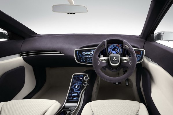 Belül érdekes kettősség jellemzi a PX-MiEV-et: a szarvkormány és a körülötte elhelyezett kijelzők olyan komplikáltnak tűnnek, mintha valami űrkompból érkeztek volna, egyébként viszont a végletesen, már-már a sivárságig egyszerű formák jellemzik a belső formatervet is.