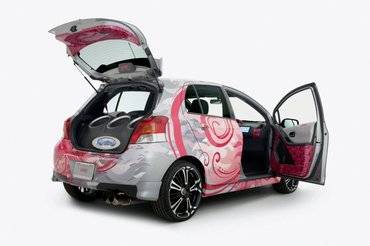 Tehettek volna bármit az egyedi Yarisba, úgyis csak a festést nézné mindenki. A rózsaszín és szürke árnyalataiból álló göndör-indás mintázat nyilván csak egy szűk körnek jön be, de a figyelem felkeltésére biztosan alkalmas.