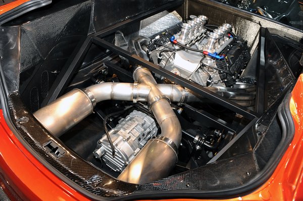 Az autót Észak-Amerika legnagyobb tuning-kiállítására, a SEMA Show-ra szánták nézőcsalogatónak, így a külseje sem kerülhette el az átalakítást. A hátsó ablak alól kikandikáló V8-ason kívül kapott új, teljesen lesimított orr-részt, alul gigantikus légbeömlőkkel, hátul egy hatalmas diffúzort, és persze 20 hüvelykes felniket Toyo T1R gumiabroncsokkal. A narancssárga fényezést karbonszálas kiegészítőkkel dobták fel: az első kötényidom, az oldalsó kopoltyúk pereme és a tető is a szövetmintás szürke anyagból készült.