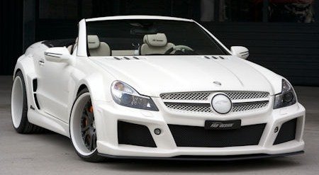 A fehér szörny, amelyet a FAB nevű német cég állított kerékre, az ami nagyobb, az biztosan jobb elvet követi. Ultraszéles sárvédők, hengerszerű könnyűfém kerekek jelképes gumifilmmel a felületükön, négy hatalmas kipufogóvég, és rettentő hűtőnyílások az első lökhárítóban. Egy első vonalbeli versenyautó sem nézhetne ki drámaibban, és ennek tetejébe a FAB SL-je brutálisan gyors is. V12-es biturbó motorja 750 lóerős és 1180 Nm-es csúcsnyomatékú, így a hordólábú, ólomfehér roadstert 4 másodperc alatt rántja 100 km/h-ra, és 310 km/h-s végsebességet biztosít a számára.