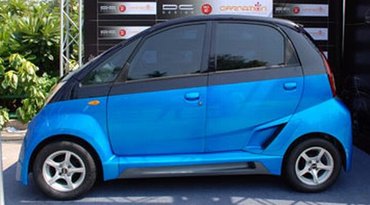 Ha van autó, ami igazán távol áll attól, hogy sportos legyen, a Tata Nano az. A kicsi kerekű, magas, keskeny és rövid guruló esernyőt mégis odaadták Dilip Chhabriának, a közismert szabadúszó tervezőnek, aki ráaggatta a brutális sportkocsik minden lényeges ismertetőjegyét. Elöl hatalmas hűtőnyílások, egy kis sárvédő-szélesítés, alufelnik, a hátsó kerekek előtt nagy légbeömlő. Mindez egy Ferrarinak jól áll, de a Nano arányait ismerve nem is csodálkozunk rajta, hogy a végeredmény finoman szólva is groteszk. Mindezt ráadásul kék-fekete fényezéssel álmodta meg a tervező, bár ez már nem ront vagy javít sokat az összképen.