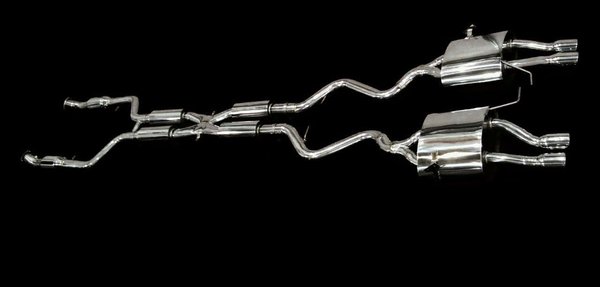 Akinek ez kevés lenne, és elég mély a tárcája, annak a harmadik, legkomolyabb csomagot ajánlja a cég. Itt már 0.67 bar töltőnyomásra képes a kompresszor, de a vevő direkt erre a konfigurációra tervezett kipufogót is kap a pénzéért. A 70 mm csőátmérőjű titánrendszer nem csak a teljesítményen javít, de az eredeti darab súlyának nagyjából a felét nyomja. A tuningot két darab kétszáz cellás katalizátor egészíti ki. A fékpadi mérések 655 lóerőről beszélnek.