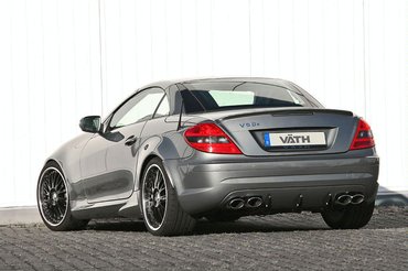 Ahogy a német tuningcégtől már megszokhattuk, ezúttal is alaposan kezelésbe vették a donort, nem álltak meg a motortuningnál, a kasztninak is nekiestek. VÄTH V58 szénszálas első lökhárítót és hátsó diffúzort kapott, egyedi alufelnijei 19 hüvelykesek. A fékrendszer is új, hatdugattyús fékek állítják meg a felpaprikázott SLK-t.