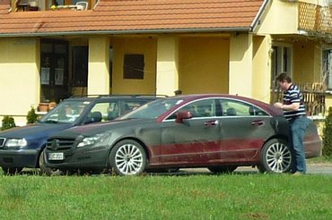 Sziasztok! Csatoltam a képeket a kámi Mercedes-jelenésről. A 8-as útról letérve Szombathely felé, Kám községben találkoztunk két nagyobb csoporttal, elöl álcázott tesztautók, mögöttük pedig a kíséret. Az első csoportban a következő generációs SLK-k, ML-ek voltak, a következőben pedig az új CLS és sejtésem szerint az új A vagy B osztály. Sajnos, csak a második csoportról sikerült képet is készíteni. A Smartban ülők legalább annyira vigyorogtak, mint mi magunk. :) Vajon a borzalmas állapotban lévő utak már ide vonzzák a gyári teszteket?!Üdv: Péter