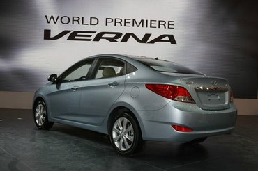 Az új Accent – vagy ahogy Dél-Koreában ismerik, a Verna – az elődeihez képest kifejezetten nagynak tűnik: inkább a Skoda Octaviához vagy a Volkswagen Jettához hasonlítható méreteiben, mint a korábbi generációkhoz, amelyek egyfajta határesetet képeztek a B és a C szegmens – a kisautók és a kompaktok – között. A formaterv is a növekedést hangsúlyozza: az autó elölről csaknem ugyanúgy néz ki, mint a nemrégiben bemutatott Sonata, nagy, ferdén metszett első lámpáival és vigyorgó hűtőrácsával. A forma hátrébb meglepően kellemes hatást kelt: az övvonal lendületes, akárcsak a tető, ugyanakkor a formák – manapság már-már szokatlan módon – egyáltalán nem ütik egymást, kellemes összhangot mutatnak az élek és felületek.