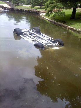 Nem hétköznapi autóval jelent meg a Texasi Egyetem autókrosszos rendezvényén az 57 éves úriember: egy polírozott alumíniumkarosszériás Cobrával villantott. A parkolóban lófráló nézők egyszer csak arra lettek figyelmesek, hogy nyélgázon rajzolja a köröket a patak melletti aszfaltra, majd egy padkán gellert kap és fejjel lefelé a vízben landol. Beragadt a gázpedálja, magyarázta a tulajdonos.