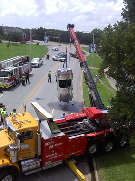 Nem bizonyult egyszerűnek a kiemelés sem: többen fogadtak arra, hogy a szintén alumíniumból készült lengőkarok nem fogják elbírni a vízzel teli autó súlyát, de sikeres volt a művelet, az autó nem sérült meg nagyon. Szerencsére a tulajdonosnak sem esett komolyabb baja, eltekintve attól, hogy vélhetően az idegbaj kerülgette, hogy büszkeségével megkóstoltatta az iszapot.