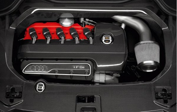 Így a gyári adatok szerint 3,7 másodperc alatt ugrik százra az 1390 kilós kisautó, ami azt jelenti, hogy az R8 V10-en kívül minden jelenlegi Audit lenyomna. Hogy komolyan gondolják az ingolstadtiak, mi sem mutatja jobban, mint a a 19 colos felnik alá bújtatott hatalmas kerámiafékek, és a két irányban állítható csillapítású futómű a hatvan milliméterrel kiszélesített sárvédők mögött.