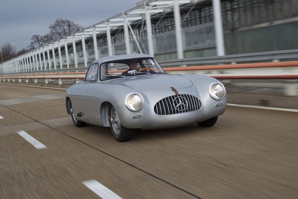 A 300 SL volt az első Mercedes versenyautó a háború után. A tervezők elsősorban a szuperkönnyű karosszériával igyekeztek előnybe kerülni a versenytársakkal szemben: ötven kilós vázat építettek, amelyre alumíniumból és magnéziumból formált karosszéria került.