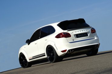 Ami elsőként szemet szúr, az a 14 részes optikai tuningkészlet. Sárvédő-szélesítésekkel, nyílásokkal tarkított motorháztetővel, küszöb- és sárvédő-toldatokkal, tetőspoilerrel és a gyáritól igencsak eltérő frontkiképzéssel igyekeztek feldobni a Cayenne alapból elég semmilyen formatervét. Ez utóbbi része a gigantikus bajuszpamacsot formázó első légbeömlő, amelyhez hasonló méretűvel eddig nemigen találkoztunk. Ahhoz persze, hogy teljes legyen a kép, kellenek még a 20 vagy 22 hüvelykes felnik, amelyek teljesen kitöltik a szélesített sárvédőíveket.