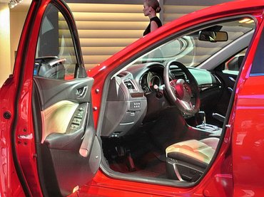 Miközben egy tévés majom óriási apparátussal műsort készített, ki is nyithatta az ajtót a pulpituson, ahonnan engem eddig lezavartak (bár megtapintottam már a kocsi elejét), ezért "kleine Fische, gute Fische"-alapon befotóztam a hóna alatt. Fogadják szeretettel az enyhén Old Spice deo-gőzön át kissé talán életlenre sikeredett, első, privát belső fotót a Mazda 6-ról az interneten!