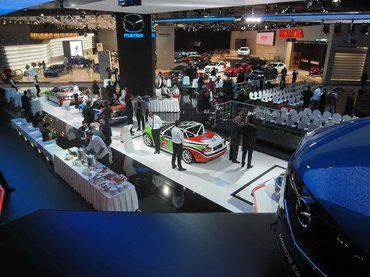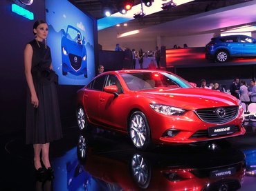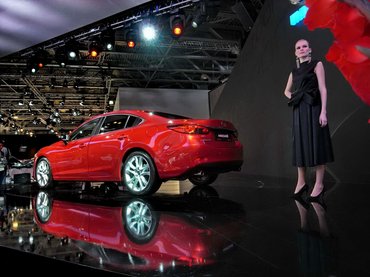 Élőben a 6-os annyira lenyűgöző, hogy a csajokat csak reflexből kombináltam bele a képbe, most, miközben a reggelizőasztalon fotosoppoltam a képeket, jöttem csak rá, hogy meg se néztem őket. Persze lehet, hogy azért sem, mert - Oroszország ide, Oroszország oda - egyáltalán nincsenek kihívóan öltözve. Majd körbefutok, megnézek más standokat is, de egyelőre nekem a Mazda a sztár. Ne vicceljenek, ennyi, finom, ingyenreggeli után...