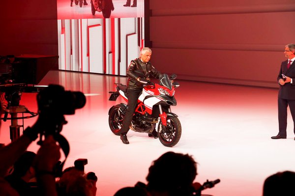 Persze az ide év óriási mordályát, a Ducati megvásárlását nem lehetett elsütetlenül hagyni. Bár igazi újdonságot nem tudott hozni a cég, hiszen a motorgyárak nem az autóipar ütemében fejlesztenek, azért begördült az új Panigale 1199 S, ami jelenleg a világ legkönnyebb sportmotorja, valamint egy Multistrada 1200 S Pikes Peak is. Utóbbi nyergében Gabriele del Torchio ült, aki erős olasz akcentussal, ezt kompenzálandó annál nagyobb hévvel magával ragadó előadást tartott. Az arcáról ember le nem olvasta volna, hogy most jó-e ez az összeolvadás a mágneses mező túlsó pólusát jelentő Volkswagennel, vagy sem.