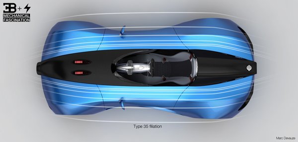 Talán nem meglepő, hogy Devauze a Type 35-öt vette elő, mely a '20-as évek második felének legendás versenyautója volt. A modell több mint ezer különböző győzelmét jegyezték le abból az időszakból, köztük a hírhedt Targa Florión elért sikereit. A TypeZero egyfajta tisztelgés a márka nagy legendája előtt. Épp úgy, ahogy az Alpine 110-50-es a 110 Berlinette előtt - leszámítva, hogy abban az esetben mind a két autó megépült, míg a Zero egyelőre csupán koncepció. Az együlésest egy elektromos motorokkal működtetett, négykerékhajtású sportautónak álmodta meg tervezője, melyben az akkumulátorok a sofőr két oldalán kapnak helyet.