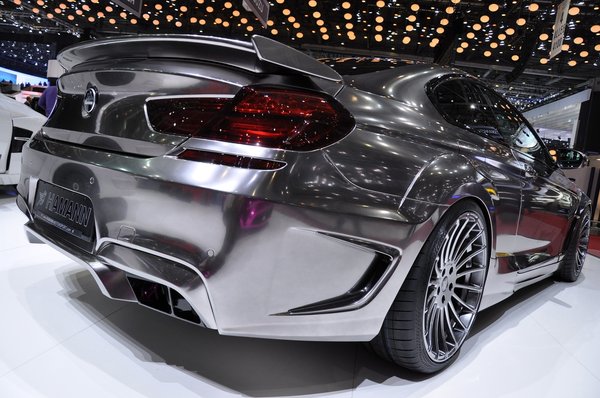 Az első, csodás darab a Mirr6r névre hallgató néhai BMW M6. A Tük6r önmagáért beszél, hiszen rögtön megértjük a frappáns névválasztás okát, ahogy belenézünk a – minden bizonnyal – méregdrága, krómszemcsét gazdagon tartalmazó, rommápolírozott autó oldalába. Nem, ez nem matrica, ez az újfajta vízbázisú festék, amire nagyon büszkék. Használják is gazdagon. Megtoldva a nagy felnikkel- és kipufogórendszerrel, valamint a bodykittel, máris kész a Hamann Tük6r.