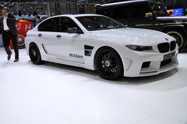 Érdekes módon egyik kiállított M BMW motorjához sem nyúltak, talán a bajorok szóltak oda, hogy nem kéne birizgálni azt, amin ők éveket dolgoztak, hogy megoldják a hengersorok közé pakolt turbók hűtését. Igen, több is volt, a következő a már kicsit elgondolkodtató Mi5sion nevű M5. Hogy mi a Mi5sziója és ki küldte oda, vagy hová tart, az nem derült ki ellenben a sárvédő-toldatok bármelyik kínai műanyagost megríkatnak. Amennyire lehet, annyira el is rontják az M5 külsejét.