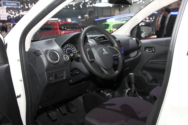 A Colté pont ugyanaz a recept, mint a Nissan Micráé, de sajnos a költségtakarékossági része is kísértetiesen hasonlít. Igaz, a kis Mitsut nem Indiában, hanem Thaiföldön gyártják, de a kettő majdnem egykutya. Egy ilyen modellnek tényleg nagyon olcsónak kell lennie, hogy a gyártás helyén sok fogyjon belőle, és ettől a belső tér igényessége...bocsánat, ezt a szót nem is szabad leírni. Ennél egyszerűbben már nem lehetne belső teret kialakítani: az ajtókon sivár műanyag panelek szomorkodnak, a műszerfal is gyászosan egyszerű, noha műszaki és biztonsági szempontból tudja az elvárható szintet, hat légzsák, ESP, miegyéb.