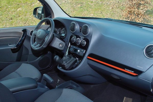 A Renaultból lett Mercedeseket igyekeztek belülről is kidekorálni, de ez a feladat nem járt feltűnő eredménnyel. Talán azért, mert az eredeti műszerfal olcsó hatású, nagy műanyag felületei teljesen elnyomják a bőrbevonatú alkatrészek és a szürke-vörös díszítőelemek hatását.