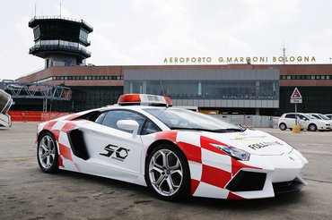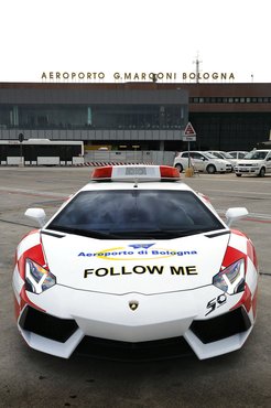 Első hallásra fura ötletnek tűnik, hogy a bolognai repülőtéren épp egy Aventadort használnak felvezető autónak, de az ötlet egyáltalán nem rossz. Az utasok akár órákat is eltöltenek a reptéri betonra néző váróteremben, és ha ott épp egy Lamborghini száguldozik fel-alá, az nyilván jó reklám a gyártónak. Ráadásul, bár a reptéri beton alkalmas lenne a száguldozásra, a felvezető járműnek nem kell különösebben gyorsan mennie a feladata ellátásához, így attól sem kell tartaniuk, hogy a dolgozók széthajtják a méregdrága sportkocsit.