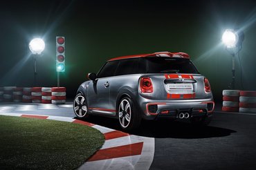 A gyáriak először persze az igényeket próbálják felmérni, így a januári Detroit Motor Show-n még csak tanulmányautóként állítják ki a John Cooper Worksöt, ám nem túl valószínű, hogy a sorozatgyártásig sokat változtatnának rajta. Az új, agresszívebb orrkiképzés egy apró optikai trükknek köszönhetően még feltűnőbb: az óriási első hűtőmaszk-keret, amely a többi harmadik generációs Minin krómozva van, itt fekete, ami látszólag még nagyobbra tátott szájat eredményez. Ezen felül további alsó légbeömlők, nagy alufelnik és dupla csíkozás gondoskodik a fenyegető fellépésről.