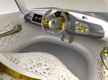 Az azért látszik, hogy korszakalkotó ötletük nem volt, így inkább néhány piszkos trükköt dobtak be. A szürke alapon kénsárga felni-, ajtó-, tető- és hűtőmaszk-betétek, illetve az ugyanilyen árnyalatúra festett rugók vonzzák a tekintetet, ha kell, ha nem. A hangszórókat idéző, lukakból kirakott mintázat szintén érdekes, bár nem tudni, mit keres egy autó orrán, ahogy az sem egyértelmű, hogy minek egy Captur méretű autóra két hatalmas, Lamborghini-módra előre-felfelé nyíló ajtó. A forma maga inkább csak kaotikus, mint eredeti, az összkép pedig a rózsaszín macskanadrágos, szőkített hetvenéves nénik okozta megdöbbenést juttatja az ember eszébe: lehetetlen nem odanézni, mégsem az esztétikumra figyel az ember.