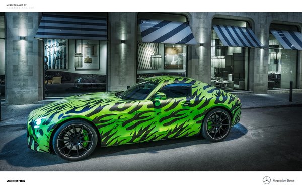 A GT megörökölte az SLS-től a transaxle felépítést, amelynél a hétsebességes, dupla kuplungos sebességváltó a hátsó tengelyhez csúszik, viszont új, kétturbós, négyliteres V8-ast kapott, amely alapkivitelben 462 lóerőt tud, az S modellben pedig 510-et. Sirályszárnyak helyett hétköznapi ajtói lesznek, viszont a formaterve még a neonzöld matricákkal is szédületesnek látszik. A gyáriak természetesen minden idők legszebb Mercedeséről beszélnek, de ezúttal lehet, hogy a kérkedés nem túlzás. Az ebédlőasztalnyi motorháztető után vagányan lapos, apró kabin következik, amely mögött kevéssel már be is fejeződik az autó egy tömpe farral. Az összhatás lenyűgöző, még akkor is, ha az arányok kicsit hasonlítanak a Jaguar F-type-ra.