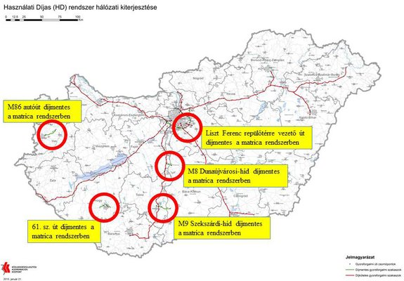 Ideiglenesen marad ingyenes Kaposvárnál a 61-es út, Szombathelynél pedig az M86-os. Ezek ugyanis jelenleg nem kapcsolódnak autópályához, amint azonban becsatlakoznak majd a gyorsforgalmi úthálózatba, újra matricavásárlásra kötelezik a közlekedőket.