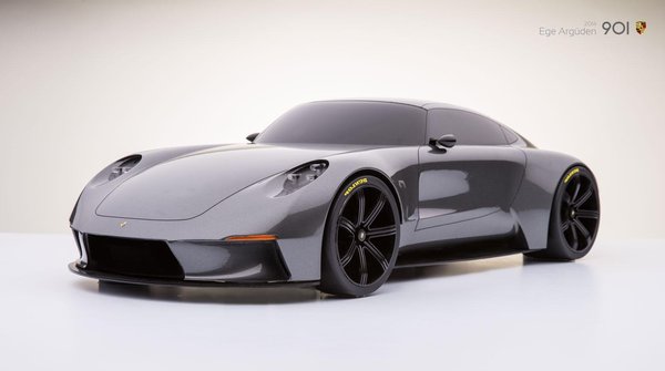 A Porsche az 1963-as Frankfurti Autószlonon jött elő az azóta sokszorosan ikonikussá lett 911 első példányával. A Ferdinand Porsche és Erwin Komenda munkájával született sziluett a sportautók egyik egyetemes szimbóluma lett, egyben sorminta a későbbi 911-esek tervezőinek. Az idén 52 éves legendás első 429 centi hosszú volt, közel húsz centivel rövidebb, mint mai utódja. Argüden a 911 gyökereinél akarta megfogni a típus lényegét, dizájnkoncepciója így lett kereken 4,3 méter hosszú. A minimalista formában már kevésbé egyértelmű a rokonság – a kötött formajegyek miatt a 901-et bármely 911-es ihlethette volna.