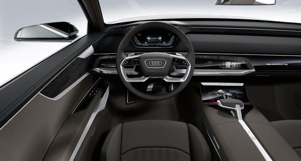 A formatervet – ahogy a Prologue kupéét is – az Audi egyfajta előzetesnek szánja: alighanem az itt látható stíluselemek bukkannak majd fel a közeljövő új Audi típusain. És ez nyilván nem csak a hűtőmaszkra vonatkozik, de a karosszéria nagy, viszont alig ívelt felületeire, a kerekek feletti határozott élekre vagy épp az ajtók alján végigfutó fényvonalra. A belső tér szintén új stílust hoz, egész egyszerű műszerfal-kialakítással, és nagyon kevés gombbal és sok érintőképernyővel – az nem kérdés, hogy ezen a téren az összes fejlesztés ebbe az irányba mutat.