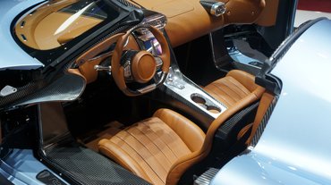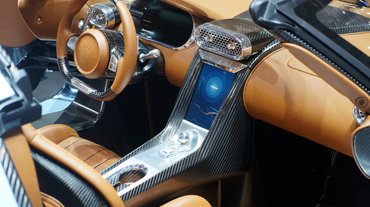 Természetesen ami csak lehet, szénszálas műanyagból készült, a felniktől az ajtóbehúzókig. A vigyázz-ajtók megvannak, a karosszérián pedig megfigyelhetőek a One:1-ről való aerodinamikai elemek. Nagyjából a klasszikus Koenigsegg-sémát követi a formaterv, egyedül a hátulja tér el a többi modelltől. Itt az Akrapovic által gyártott titán kipufogórendszer egyetlen, öblös üregen keresztül üvölti világba a Regera szörnyű erejét. Lapos, veszélyes és elképesztően erős, ugyanakkor mentes minden giccstől és felesleges sallangtól, amitől szinte megszédül az ember a szomszédos Pagani-standot nézve. A svéd megaautó tiszta formatervű, áttekinthető, funkcionális, ezért szép - mindenféle túlzás nélkül. Ezért tetszett meg nagyon, pedig ezek a lóerőgyárak igazán hidegen hagynak már egy ideje.