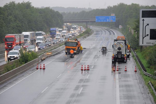 Vasárnap, kora reggel felborult egy olvadt aluminiumot szállító kamion a Dortmund melletti A1-es autópályán. A kiömlött izzó, 800 celsius fokos fém több mint háromszáz négyzetméteren terült szét, több helyen harminc centi mélyen olvadt bele az aszfaltba.
