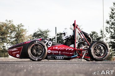 Aztán bemutatja az új autót. A tavalyi ART01-esből megtartották a jó dolgokat. Egyszerű, megbízható és könnyen szerelhető lett az ART02. Fontos, hogy a cockpit kényelmesebb legyen. Az acél csővázas, hátsókerekes járműben egy KTM 500 EXC-ből származó egyhengeres blokk van. A versenyszabályoknak megfelelően a szívórendszer elejére 20 mm-es szűkítőt kellett rakniuk. Áttervezték az egész szívó- és kipufogórendszert. Egy új motorvezérlő program megírása után a gyári 58 lóerőből 50-et sikerült megtartani. A 175 kg-os menetkész tömeg függvényében ez nem is kevés. A maximális forgatónyomaték 43 Nm, mely 3000-es fordulattól a 9500-as tiltásig rendelkezésre áll.