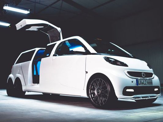 Ahogyan a műhely neve is mutatja, ezúttal egy limuzinról van szó. Alapul a Fortwo-t vették, amelyet alaposan megtoldottak. Mintegy 280 centiméterrel lett hosszabb. Ezt megbolondították plusz két kerékkel, és sirályszárnyas ajtókkal, az összhatás tehát eléggé meghökkentőre sikeredett.