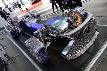 Az LF-FC igazi óriás, két méter széles, 5,3 méter hosszú és 1,41 méter magas, bár ez a képekről nemigen derül ki, talán az arányosan óriási, 21-es felnikre épített kerekek és az összehasonlítási alap nélküli háttér miatt. A stílusát rég ismerjük: a homokóra-hűtőmaszk és az autó oldalnézetének vonalvezetése már számos Lexus modellen felbukkant, elsősorban a méretek és néhány részlet jelent változást. A hűtőrács például azt az érzést kelti, mintha millió fogsor vicsorogna egy nagyon éhes mélytengeri ragadozó szájából, de a nagyon alacsony, háromrészes LED-fényszórók is hozzátesznek a fenyegető összhatáshoz. Úgy tűnik, a Lexushoz is bedolgozik ugyanaz az autóhátsó-tervező aki a Toyota Mirai farát rajzolta – a hasonlóság tagadhatatlan, de talán rájönnek a tévedésre, még mielőtt az amúgy egész elegáns luxuskocsi gyártásba menne.