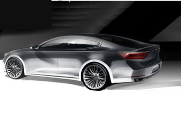 Ma is probléma a koreai gyártónál, hogy a két márka kínálata stílusban nem különül el elég élesen egymástól. Ám most úgy néz ki, a Kia nagyobb modelljeire osztják a sportosabb stílust, míg a Hyundai viszi tovább a konzervatívabb vonalat. Erre utal legalábbis az a néhány vázlat, amelyet a jövőre bemutatkozó Kia Cadenzáról mutattak. Egy efféle rajz persze számos túlzó részletet tartalmaz – a szériamodellnek nyilván kisebb kerekei lesznek, és magasabb tetővonala – de az azért látható, hogy a Kia tervezői az Audi A5-A7 jellegű, kupétetős fazon felé mozdulnak el. Úgy tűnik, kitaláltak egy új hűtőmaszk-fazont is, vaskosabb krómkerettel és a jelenleg használt tigrisszáj-vonal egy jóval visszafogottabb változatával.
