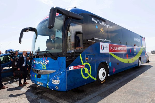 Az UEFA, korábbi szokásához híven, pályázatot írt ki a buszokon megjelenő szlogenekre. Összesen több mint egymillió szavazat érkezett a különböző országok szlogenjeire. A magyar válogatott csapatbuszán aRia Ria Hungária! szlogen olvasható, aminek a kicsit érdekesen hangzó angol Ry Ry Hungary! változata is megjelenik a busz oldalán, szerencsére ez utóbbi csak egész kicsiben. Az összes csapatbuszon rajta van a nemzeti zászló és az ország neve is, természetesen angolul.