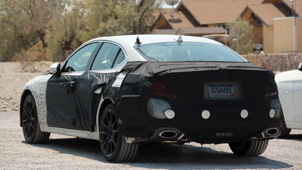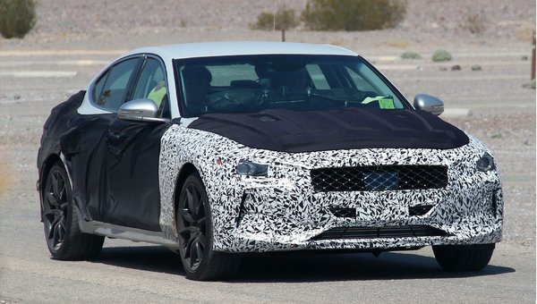 Még márciusban mutattak egy tanulmányt New Yorkban, amely elég szokatlan megjelenésű lett – nos, úgy tűnik, annál jóval visszafogottabb lesz a szériamodell. A tető, amelyet itt nem fedtek el igazán, akár egy Infinitié vagy Lexusé is lehetne, a többi részletet viszont vastag álcázóréteg fedi. Az autó arányai azt jelzik, hogy hátsókerék-hajtású lesz az autó, de ez manapság ebben a méretben szinte kötelező. A konzervatív vonalvezetés egyébként érthető: így lehet potenciálisan a legtöbb vevőt megfogni. Márpedig a G70-nek kell a márkát a hátán vinnie.