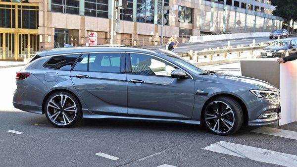 Azonnal feltűnik az Insignia új stílusa: rengeteget örökölt a Monza-tanulmánytól, annál kevesebbet a korábbi Opelektől. Látszik, hogy a tervezőknek kiadták, ezúttal akkora utasteret kell készíteniük, amekkorát csak tudnak. Valószínűleg ezért lett olyan rövid az autó orra, és a szedánnál a hátsó túlnyúlás is, és úgy néz ki, az oldalablakok felülete is nőtt, azaz ez a modell talán kevésbé hat majd guruló bunkernek, mint az elődje. Gyakorlatilag az látszik, hogy igyekeztek minden kritikai megjegyzésre válaszolni, még ha ez a formai egység rovására is ment. A szedánnál ez még nem annyira feltűnő, a kombinál viszont jól látszik, hogy az Astrához hasonlóan a tetővonal alatt futó széles krómdekorral próbálták megváltoztatni az autó profiljának jellegét.