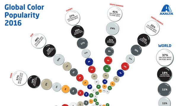 India az ezüsttel lázad, ha a kínaiakon múlna, tízből hat autó fehér lenne – kijött 2016-os autószín-statisztikájával az Axalta autóipari festékgyártó. Kapaszkodik a fekete, holtversenyben a szürke az ezüsttel.