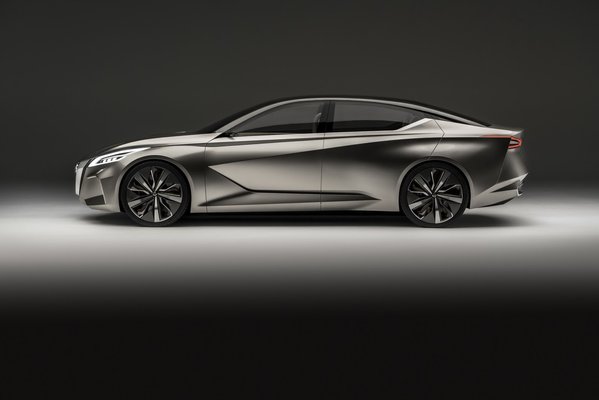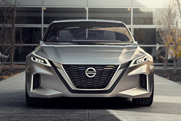 A tanulmány neve azt sejteti, hogy ez az autó a Nissan stílusában tervezett változásokat összegzi – a V-motion a Nissan jelenlegi orrkiképzésének fantázianeve – de sokak szerint emellett a következő Altima előképe is lehet. Az orrkialakítás kétségtelenül tartalmaz új elemeket, a V alakú, krómkeretes hűtőrács például akkorára nőtt, mint az Audi single frame hűtőmaszkja, a ferde metszésű fényszórók és a szögletes alsó légbeömlők pedig még több agresszivitást sugallnak. Ám nem az orra az, ami igazán érdekessé teszi a Vmotion 2.0-t.