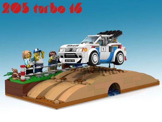 Az 1980-as évek raliversenyeinek hangulatát hozza vissza a levegőben ugrató Peugeot 205 T16 Evolution 2, magával a bukkanóval és a rajongókkal a kordon mögött. Bár az autó elég elnagyolt, a matricázás alapján egyértelműen azonosítható. A készítő, AbFab1974 úgy képzeli, hogy ez is lehetne egyike saját Speed Champions sorozatának, amelyhez jelenleg a Ford GT, a Bugatti Chiron és a Mercedes-AMG GT3 Lego-változatai tartoznak. A 205-ös azonban különösen tetszett nekünk is, és némi plusz aktualitást ad neki, hogy ugyanezzel a típussal küzdünk most Rulettkerék sorozatunkban.