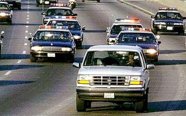 Az autó tulajdonosa, Mike Gilbert anno O.J. sportmenedzsere volt. Még 1995-ben jutott hozzá attól az Al Cowlingstól, aki az autót vezette az amerikai tévétörténelem egyik legnézettebb eseményén, O.J. Simpson autósüldözésén. 1994. június 17-én történt, hogy a felesége és annak szeretője meggyilkolásával vádolt O.J. Simpsont barátjával, Al Cowlinggel együtt üldözőbe vették Kalifornia útjain. A Bronco lassú üldözésébe a rendőrök mellett hamar bekapcsolódtak a tévétársaságok; még az NBA döntőt is megszakították, hogy élőben közvetítsék az addig már egy komoly NFL-es és kevésbé komoly vígjáték-karriert megélt Simpson menekülését. Körülbelül kilencven millióan nézték élőben a sztár letartóztatással végződő kergetőzést, s így a fehér Broncót.