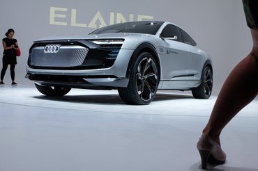 Amit a legjobban vártam, azt nem látom – az új A7-esre gondolok. Kiderült, hogy azt nem mutatják be most. Van helyette vadonatúj A8 – az első, bizonyos körülmények (Autobahn-stau, max. 60 km/óra) között már hivatalosan is önvezetőnek engedélyezett autó Európában, illetve két tanulmány. Egyik az Elaine, s nagyon hasonlít a korábbi e-tron Sportback tanulmányra. Sokadik generációs önvezető-protípus, s már olyanokat tud, hogy önvezető módban előz és kikerül autókat, tereptárgyakat, hogy időben odaérjen a navigáción beállított helyszínre, illetve akár vezető nélkül is el tud látni bizonyos feladatokat – például parkolóházba felhajtani, megtalálni egy üres helyet, elgurulni a parkolóházon belüli mosóig, visszaállni. Mindenesetre jól néz ki, mert csinálni semmit sem csinál itt a világítgatáson kívül.
