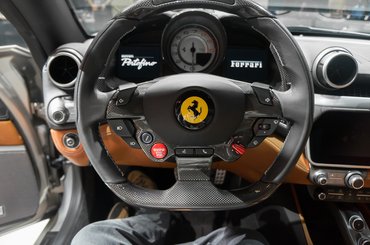 Jó ránézni, mert szépek az arányai, az oldalsó légbeömlő pedig végképp megvett, olyan, mintha elkészítették volna az autót, és utólag fúrták volna bele. A beltér teljesen visszafogott, az ülések is inkább kényelmesek, mint sportosak. Simán csak jó bent létezni. És most én leszek az akadékoskodó gyökér, aki ahelyett, hogy örülne, hogy Ferrariban ül, nyafog: a középső konzol karbon fedele nem megy a helyére, a rugó csak félig tudja előretolni, utána kézzel kell rásegíteni, mert megszorul. Remélem, az első vásárlóknak már nem kell ekkora drámával szembesülniük.