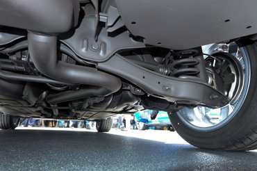 Amúgy, álló helyzetben, ívlámpák nyomása alatt egész rendben levőnek tűnik a T-Roc. Nagyok, kényelmesek az ülések, a váltó azzal a kissé szintetikus, de kellemes érzéssel klattyan, mint minden VW-ben, a kapcsolók arretálása (ez a mechanikus kattogás neve) kiszámított, hűvösen precíz, az illesztések, a fényezés minősége kiváló. Alá is fényképeztem a sárga T-Roc-nak, amivel a legtöbb időt töltöttem – ez az összkerekes 4Motion kivitel volt, emiatt természetesen többlengőkaros hátsó futóművön ácsorgott, s ott a féltengely is.