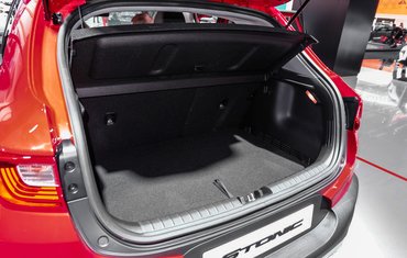 A Stonic egy mini szabadidőautó, amelynek legnagyobb újdonsága, hogy minden eddigi Kiánál több kombinációban rendelhető meg – csak a karosszéria-tető színeinek lehetséges kombinációja húszra rúg. Kissé lyukas tigrismaszk az orron, széles terpesz, fekete sárvédőív-peremek, üvöltően határozott, egyenes kontúrvonalak és trapezoid kialakítás – a Stonic a legmodernebb trendeket követi, például a szalon túlsó felén vele egy időben bemutatott VW T-Roc egészen hasonló elgondolások mentén készült. Köpjenek le, de nem tudom eldönteni, melyik tetszik jobban...
